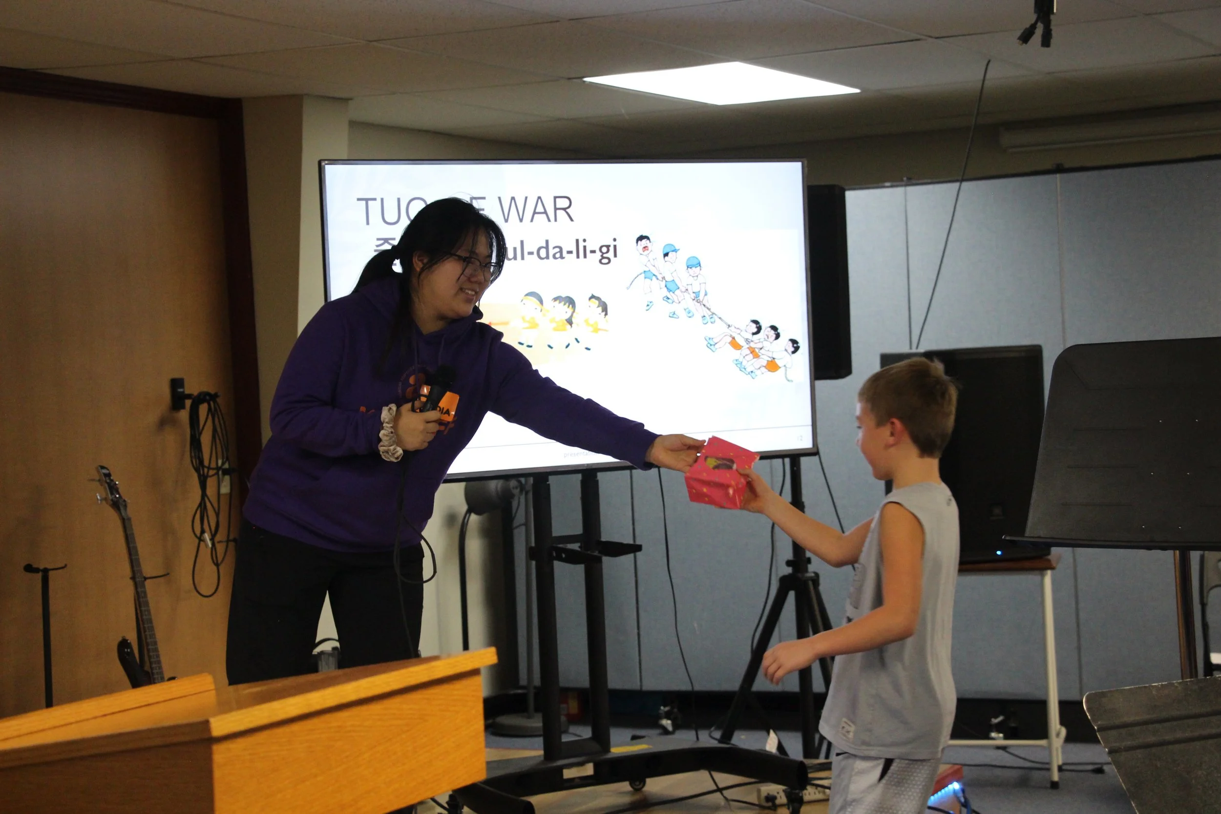 We had fun at this event, we played tug of war, soccer, badminton and we got to eat delicious Korean BBQ grilled by the volunteers’ dads
